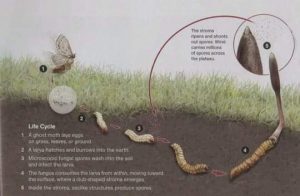 Đông trùng hạ thảo sinh trưởng ở cao nguyên Thanh Tạng Trung Quốc, nơi cao hơn mặt biển 3700-4200 m, giá lạnh và thiếu dưỡng khí. Khuẩn trùng thảo ký sinh trong lòng ấu trùng ngài dơi, suốt mùa đông hút dinh dưỡng của ấu trùng mà lớn lên, mùa hè sang năm, từ miệng ấu trùng, mọc ra một cái mầm như cỏ, chính đấy mà có tên Đông Trùng Hạ Thảo.